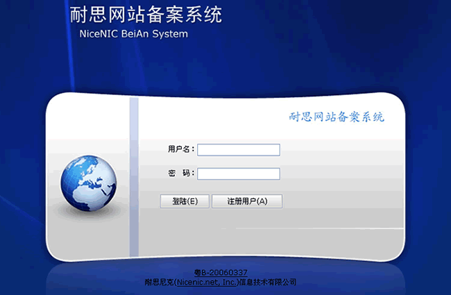 输入备案用户名和密码即可进入到备案系统.三种方式进入的备案系统界面都一样.如下图: